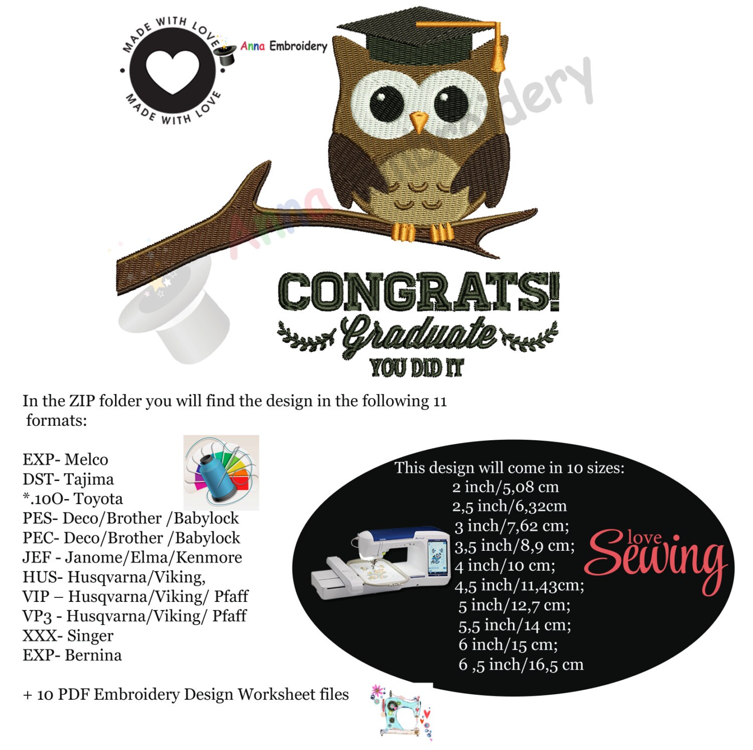 Graduation Owl Embroidery Design Cap Embroidery Etsy Finland